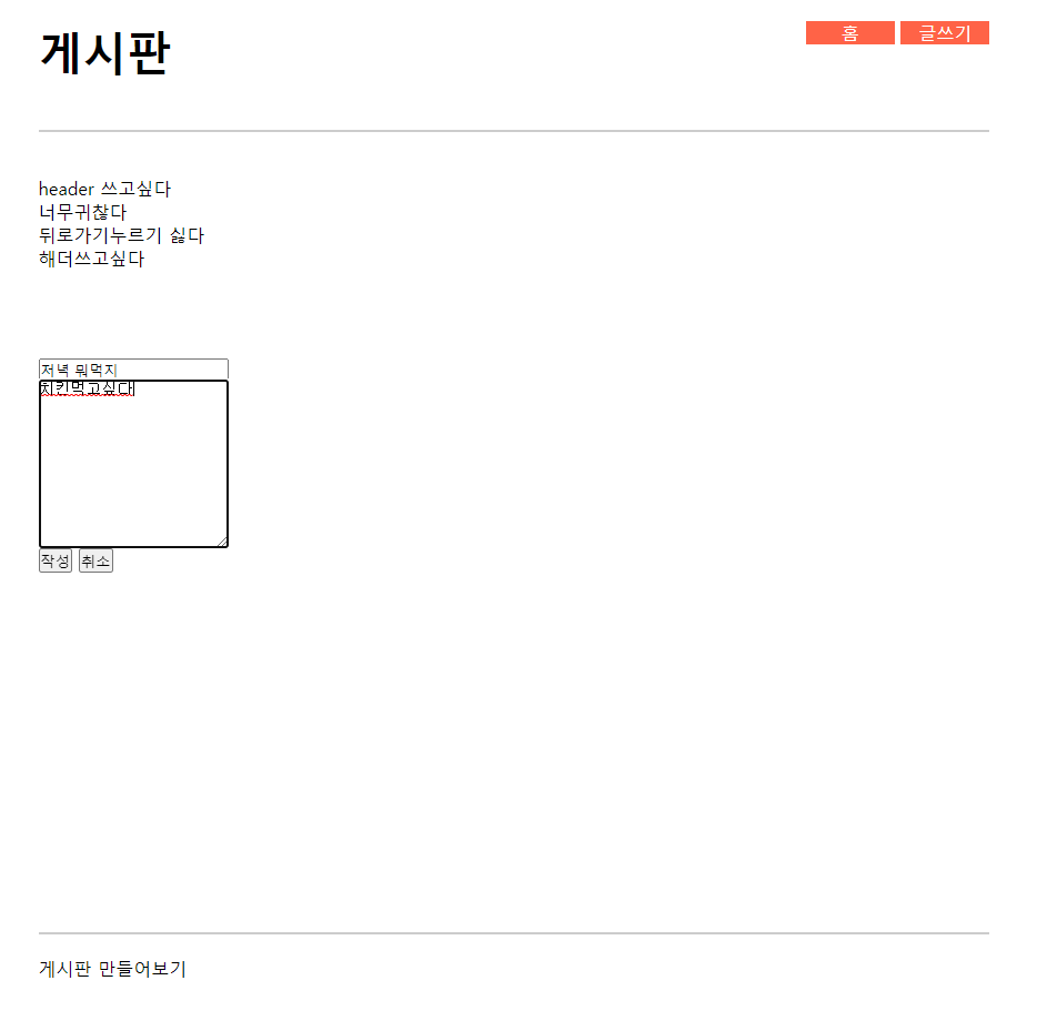 글쓰기 버튼 클릭시 indexwrite.php로 이동하는데 나머진 다 같고 p태그에 form을 넣어서 그자리에서 작성이 가능하도록 만들어놓았다.