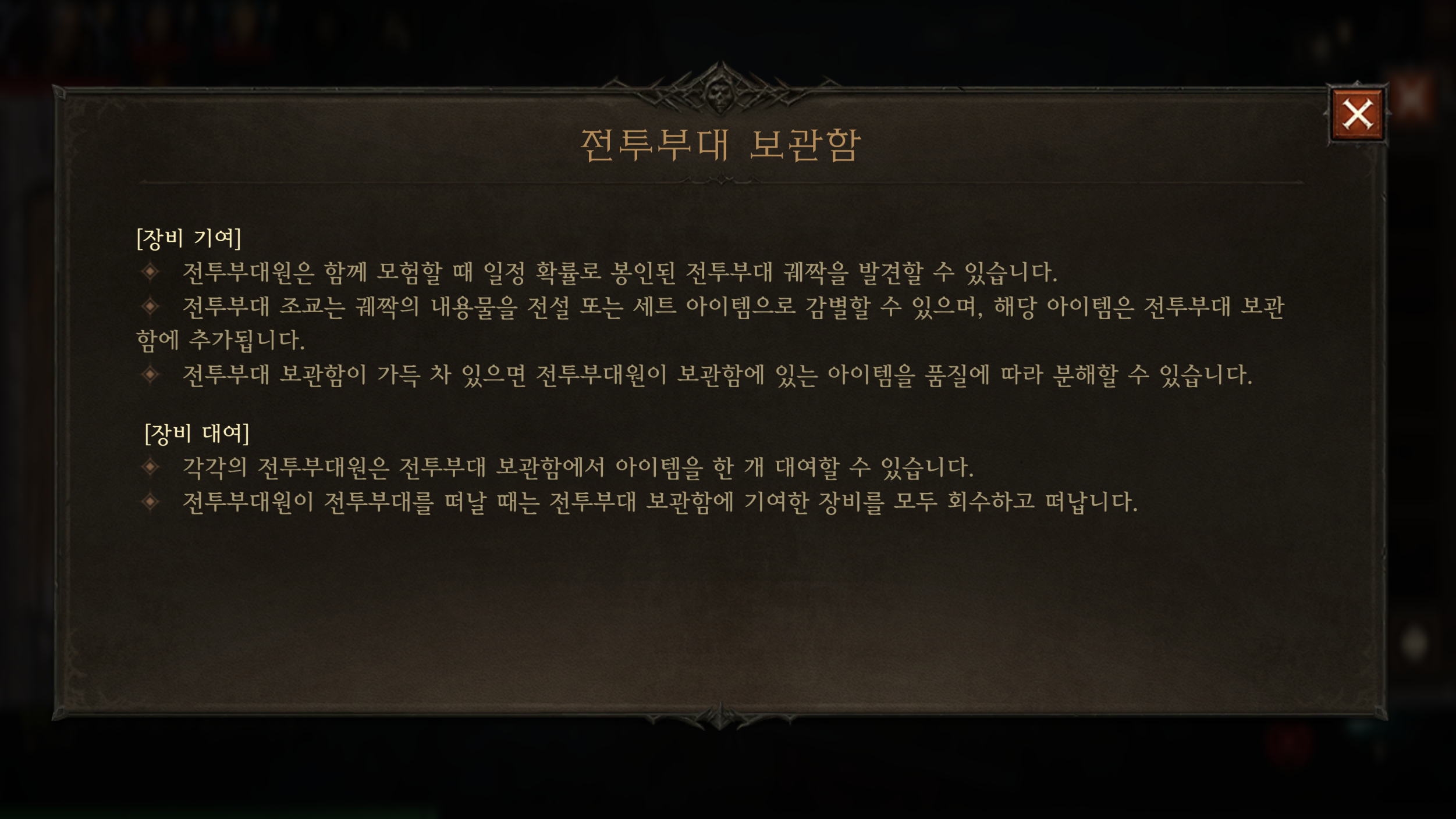 전투부대 임시거처를 뚫으면 별거없이 그냥 보관함하나있는데 내가 주운 보관함 까면 여기 창고안에 자동으로 들어가서 같은 전투부대원이 빌려갈 수 있음.