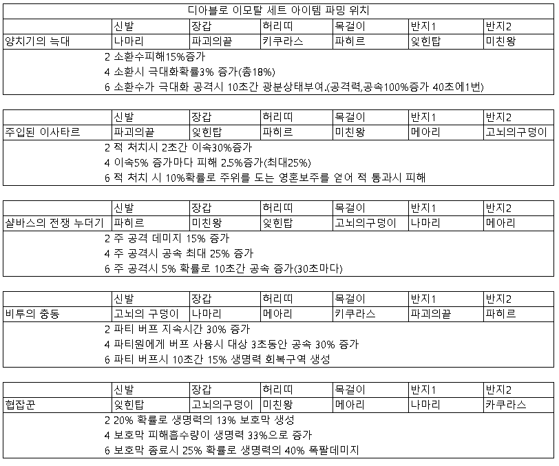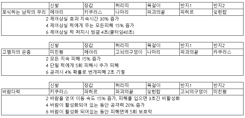 악세사리는 전설이 없는대신 세트가 있음. 6세트까지 착용가능