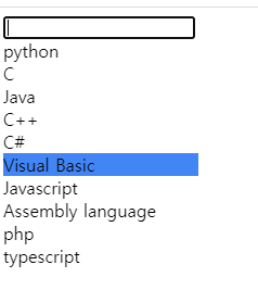 하려는 내용은 간단하다. input 에있는 텍스트에 글을 입력하면 javascript의 배열에 있는 값들을 검색해서 밑에 있는 add_div에 div를 추가시키기 까지만 하려 했지만 뭔가 아쉬워서 키보드 화살표와 엔터키를 이용해 선택 입력이 가능하도록 추가했다.