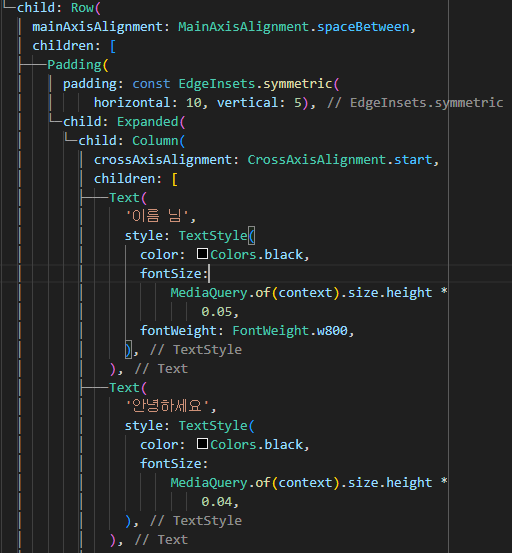 이까진 괜찮았지만 폰트사이즈를 비롯해 안에있는 자식들의 값들에 따라 화면을 벗어나 에러가 발생하는 경우가 자꾸 나타나서 각각 폰트의 사이즈도 MediaQuery로 적용하였다.