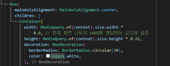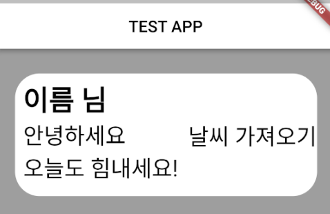 또.. 너무 각져잇어서 boxDecoration을 이용해 Radius를 넣어 둥글게 만들자 이제는 글자들이 빠져나가기까지 해서 엄청난 멘탈의 손상을 겪었다가 패딩을 살짝 넣어주어 처리는 했지만.. 이 패딩이 정말 효과가 있을지 의문이다.. 어느정도 만들고 핸드폰을 하나 구해서 직접 테스트를 해봐야 할듯하다.
