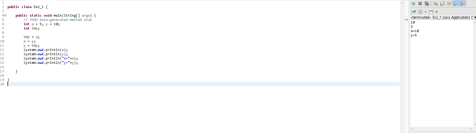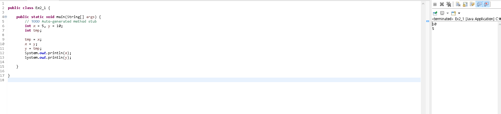 그 후, y값에는 x값을 저장해놓은 tmp값을 넣으면 변수의 변경이 완료된다.