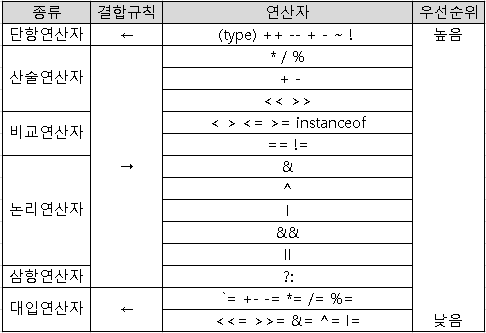 대입과 단항 연산자를 제외하면, 모두 왼쪽 -> 오른쪽 으로 계산된다.