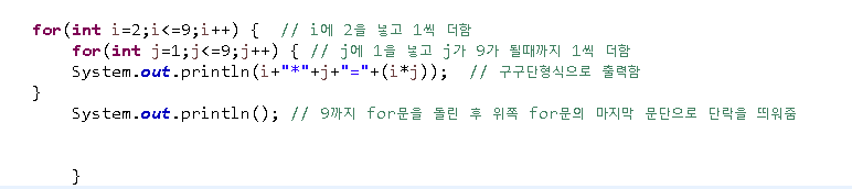 for문 안에 또 다른 for문을 포함시킬 수 있다.