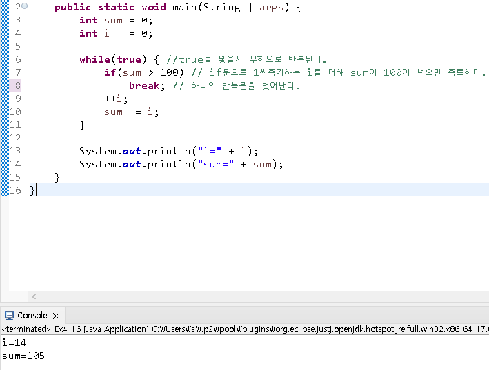 break loop1; 의 경우 맨위에 있는 for문이기에 실행되면 바로 프로그램이 종료된다.