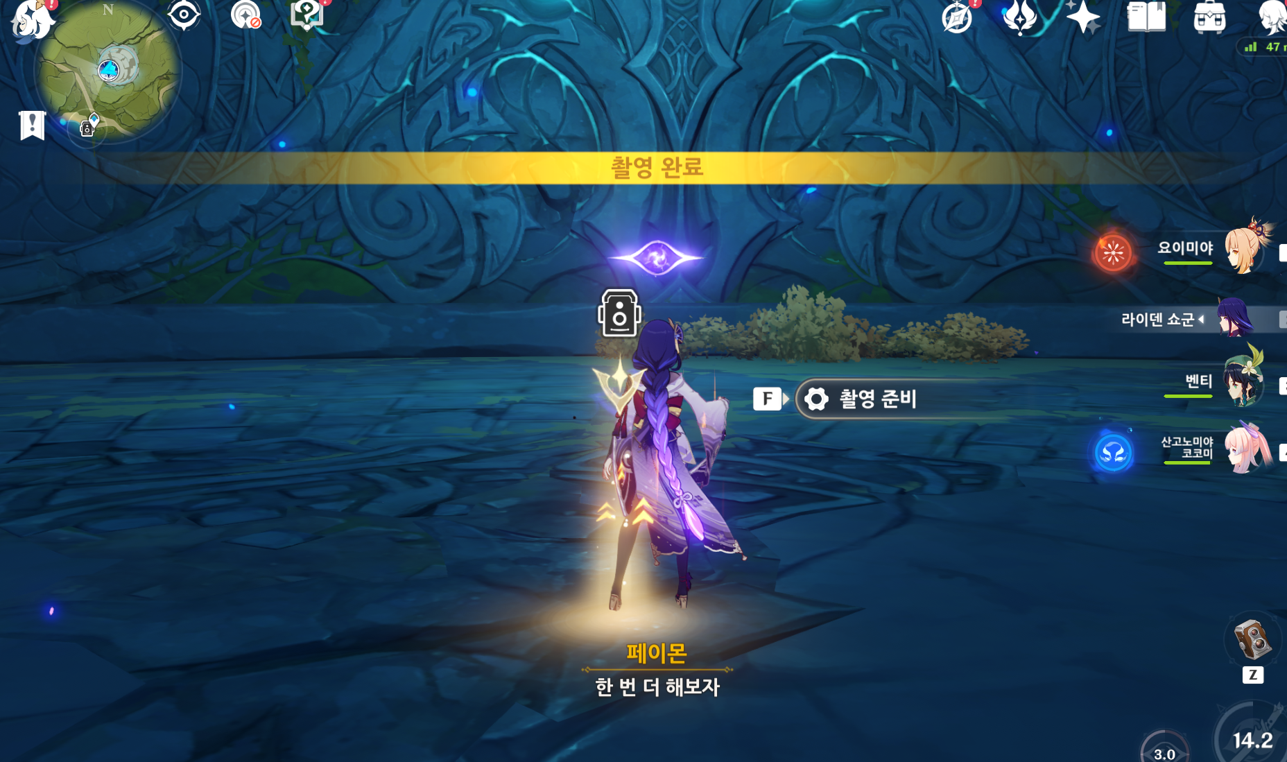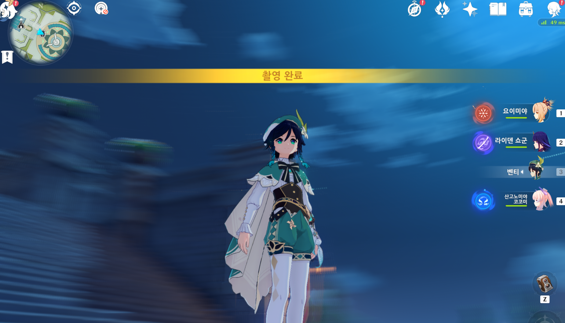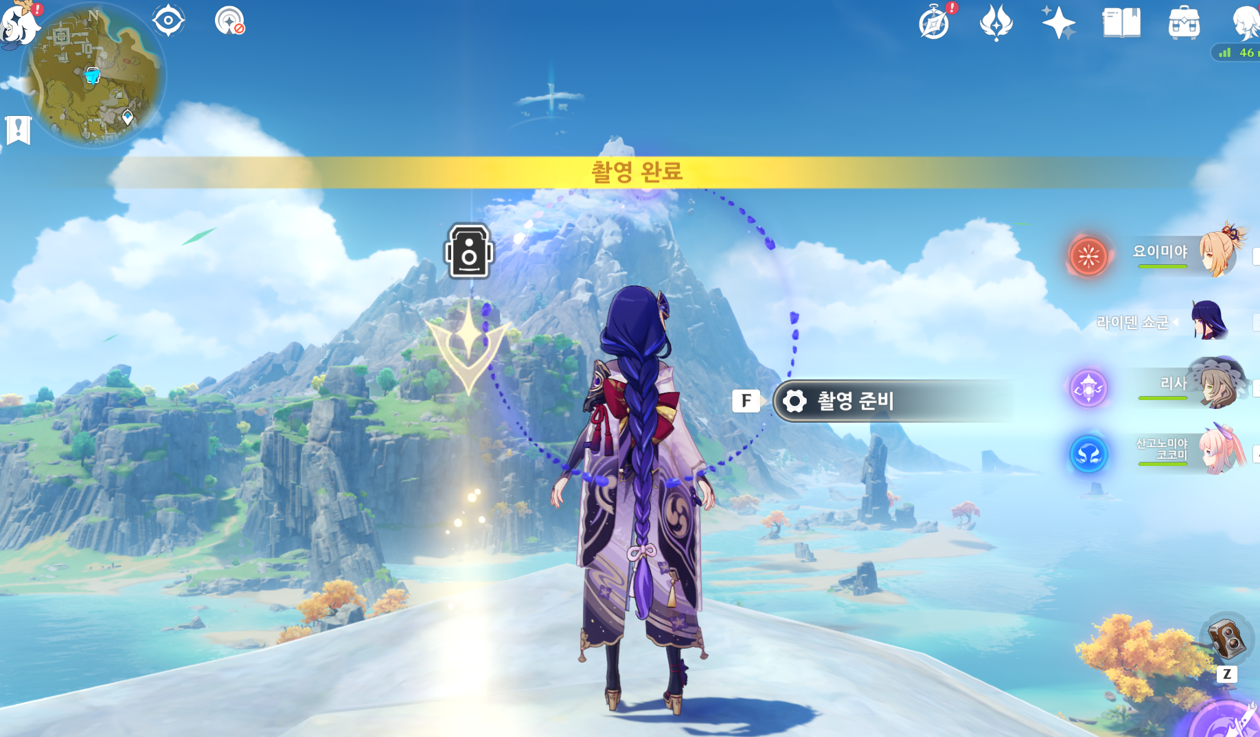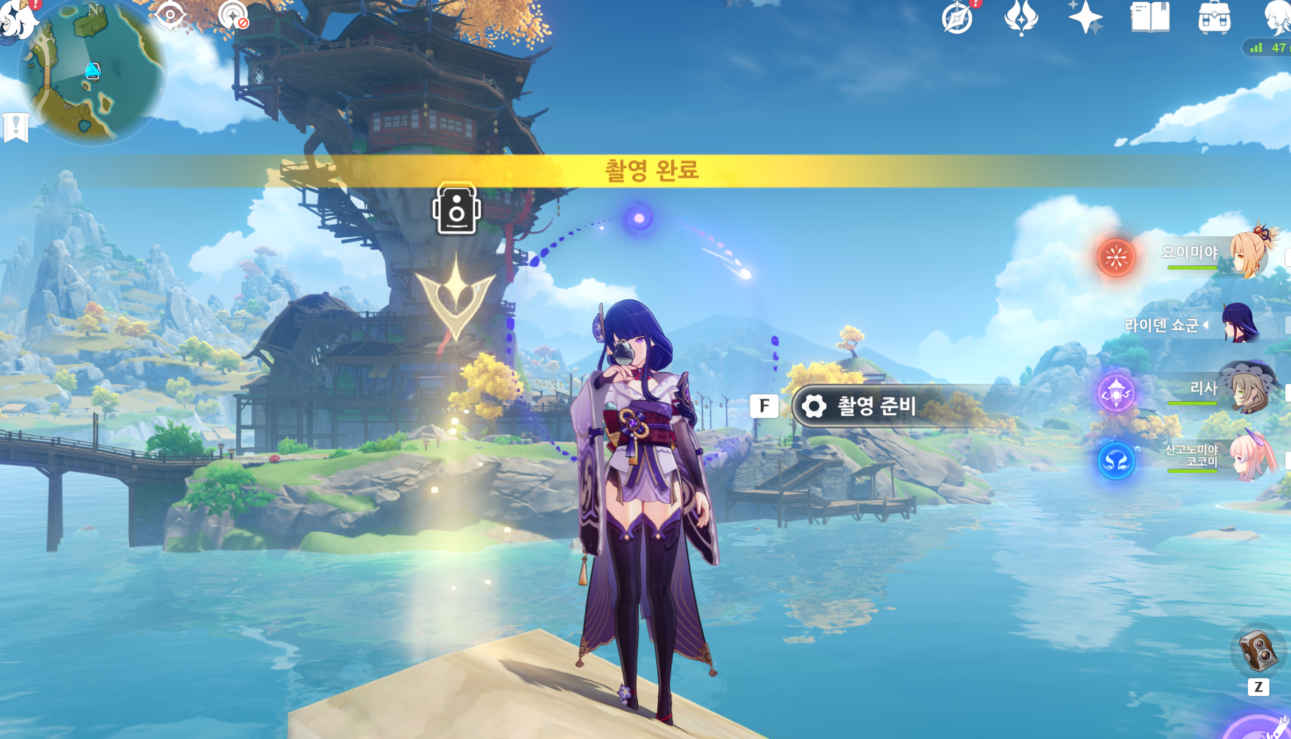 카메라는 esc눌러서 여는 스크린샷용 카메라가아니라 배낭에있는 카메라를 장착하면 z키에 카메라가 들어가여